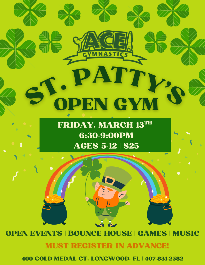 Open Gym is for ages 5-12 and held on select Friday's from 6:30 pm- 9:00 pm!